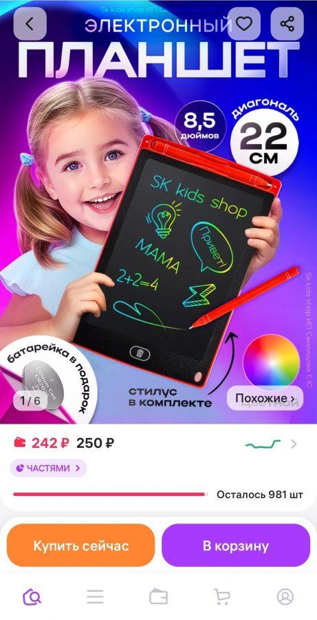 Планшет для рисования, доска графическая LCD со стилусом 8,5